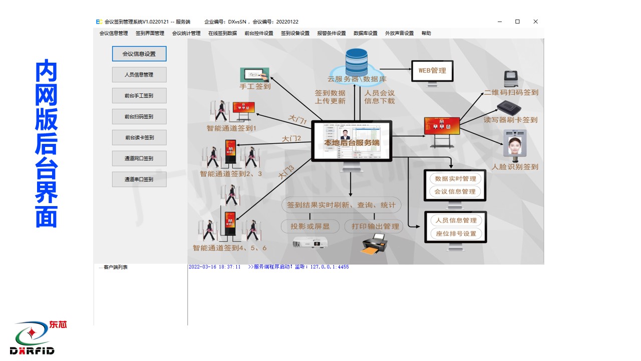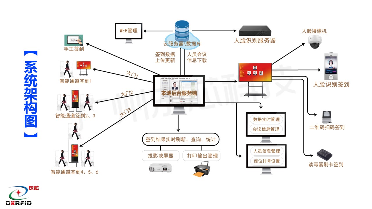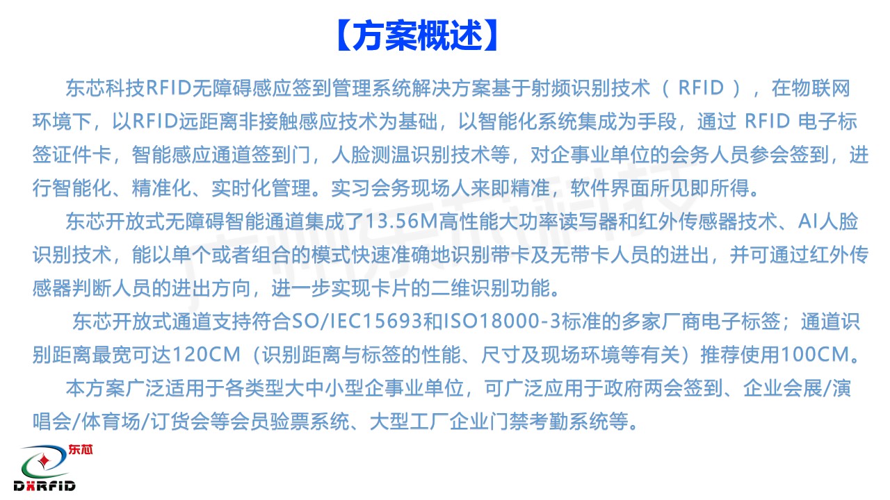 化系统集成为手段,通过 RFID 华体会客户端证件卡,智能感应通道签到门,人脸测温识别技术等,对企事业单位的会务人员参会签到,进行智能化、