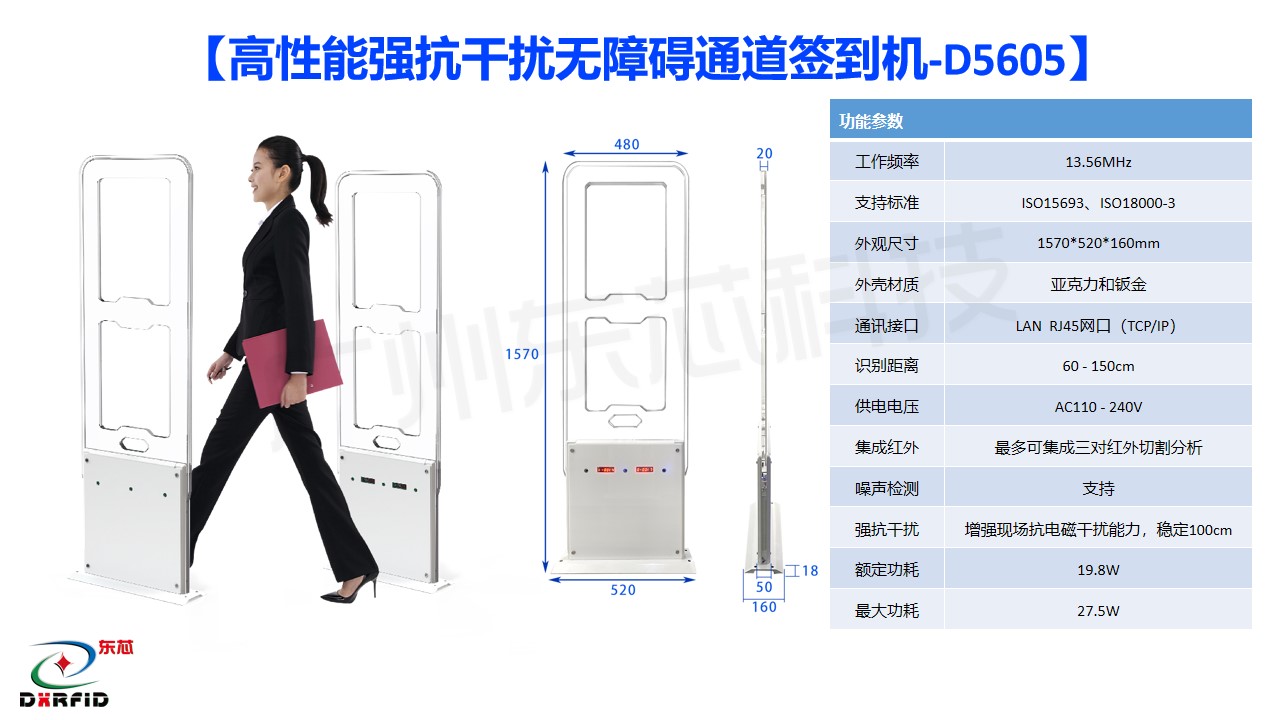 东芯开放式通道支持符合SO/IEC15693和ISO18000-3标准的多家厂商华体会客户端;通道识别距离最宽可达120CM(识别距离与标签的性能、尺寸及现